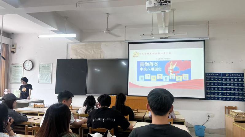 为深入贯彻落实全面从严治党要求,持续深化作风建设,2025年6月11日,艺术学院党委组织学生党员分别在制图楼207、209教室召开中央八项规定精神专题学习,本科生第一党支部书记王萱、本科生第二党支部李杰分别本支部学生上专题党课。