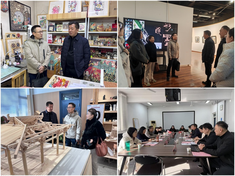 在河北农业大学,艺术学院院长卢国新教授详细介绍了河北农大艺术学院的办学历史、学科布局、师资队伍建设及人才培养整体情况,重点分享了学院在立足地域特色、深化产教融合、打造艺术实践品牌等方面的核心思路与实践成果。艺术学院副院长李久熙、王兆丰分别围绕人才培养方案制定、科研体系搭建、项目申报与管理以及科研成果转化等方面的探索,特别是在艺术科研与地方产业融合、非遗文化创新等领域取得的成效。贾鹏介绍了山东农业大学艺术学院的办学历史及发展特色,双方围绕艺术学科服务乡村振兴、科研成果转化等共同关注的领域交换意见。